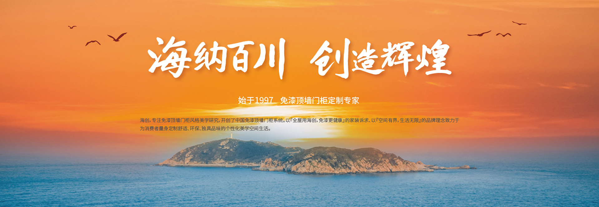 海創(chuàng),專注免漆頂墻門柜風(fēng)格美學(xué)研究,開創(chuàng)了中國免漆頂墻門柜系統(tǒng)。以『全屋用海創(chuàng),免漆更健康』的家裝訴求、以『空間有界,生活無限』的品牌理念致力于為消費者量身定制舒適、環(huán)保、獨具品味的個性化美學(xué)空間生活。
